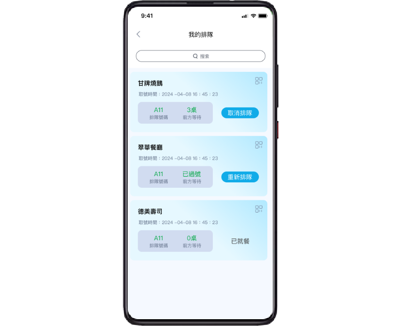 智能进度追踪:系统自动显示排队编号、起始时间、候位桌数